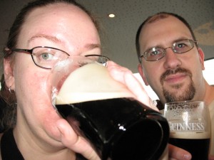 My first taste of Guinness was at an Irish pub at Downtown Disney circa 2005. After moving to Dublin, we agreed that the Guinness really is better here. At first I was more likely to order a Bulmers cider, but then, pint by pint, that stout starting tasting very familiar to me, smooth and creamy, barleyrific. Now I’m happy to sit in an auld man pub on a Thursday night after work, keeping company with a few pints of the black. Women are supposed to drink their Guinness by the glass (half pint), possibly spiked by some black-currant flavored Ribena, or not all all, but I like the full Imperial, unadulterated, and based on statistics and observation, paid for by my friends (yeah, I’m down a few rounds** I’m afraid).