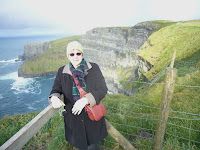 Tuesday and Wednesday we took all-day coach tours of the area. Tuesday we went to the Cliffs of Moher and the Burren area of County Clare. The terrain is barren and rocky but very beautiful. Boireann, its Gaelic name, means rocky land. We had lunch in a pub in the tiny town of Doolin. The Burren interior has no settlements today because of its shortage of water. The rivers are drawn underground by the limestone permeability. There is