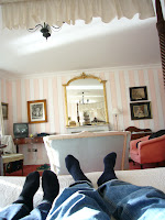 On Saturday, October 25, The Gunters and Lambs drove from Dublin to the Connemara region of Western Ireland. We went to the only town in the area, Clifden. There we lodged in a beautiful bed and breakfast, The Quay House, which is right on the water. Our rooms were spacious and comfortable. Sharon and Bill’s room was sort of British Colonial with zebra-skin rug on the floor. Charles and my room was more traditional with four poster bed with canopy. After settling in, we went to the city center and had a wonderful dinner at Off The Square restaurant.