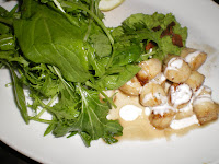 Restaurants can also provide delicious meals, and Bill doesn’t have to slave in the kitchen. We hadn’t been out to dinner in City Centre for a while, so a few weeks ago, Bill came into town and met me for dinner at La Mère Zou on a Monday night (March 30). Our meal was lovely. I had a spring pork terrine for starter; Bill had roasted quail on truffled white beans. My seabream with white asparagus, girolles & jerusalem artichoke fricassee was very nice, but Bill’s lamb tasting (pictured) was the star of the meal–roasted loin, herb crusted fillet, braised spiced shoulder and glazed sweetbread. The braised shoulder was terrific. I finished up with a smooth and light almond panacotta, and Bill had pain perdu, which is indeed French Toast!