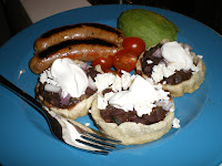 My recommendation for any expat with a desire for Mexican food is to bring your own chef! Bill made these tasty sopes, which are basically thick corn tortillas pinched into small boats, and filled them with black beans, apetina (cows milk farmer’s cheese), red onion and greek yogurt. Served with a few sausages and avocado.