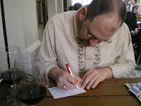 After lunch we waded a bit in the Mediterranean and relaxed on the sand. We returned to our hotel for siesta–the air had been turned on and we napped in cool comfort. That evening we started dinner at Gorki, a wine bar which is a chain, but seemingly popular with the locals. We wrote some postcards and ate jamon iberica and a wonderful salad with blue cheese and wilted leeks.