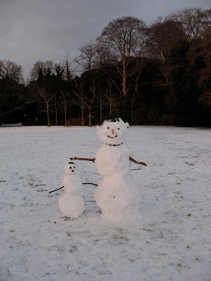 The only snowmen I saw in the park. The carrot nose and bough toupee are great.