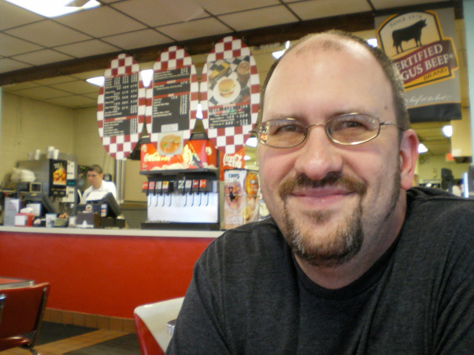 First of all, the US has number of fast food chains that will serve you a decent burger–Whataburger, Culver’s, and even Wendy’s, with Sonic and Dairy Queen also in the running. So, as is fitting an American returning to mother soil, our first meal was burgers at Culver’s. Culver’s sells “butter burgers” which in addition to being fun to say and sounding naughtily decadent, just means they butter their buns (that still sounds naughtily decadent). I worked within walking distance of a Culver’s for a few years and found their burgers to be consistently fresh-tasting. Their patties are thinner than some, but that allows them to form a nice crust. You can always get double patties. As a matter of fact, Bill is happily about to dig into a double with bacon in the photo above.