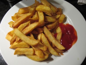 Not my favorite food but a pretty picture. Of course I just finished supper and I’m not hungry. I mowed the yard today so I was really hungry and I ate a huge salad. I had black beans, walnuts, chicken breast, raisins and spring mix greens. I crumbled a few tortilla chips over it for crunch. 🙂
