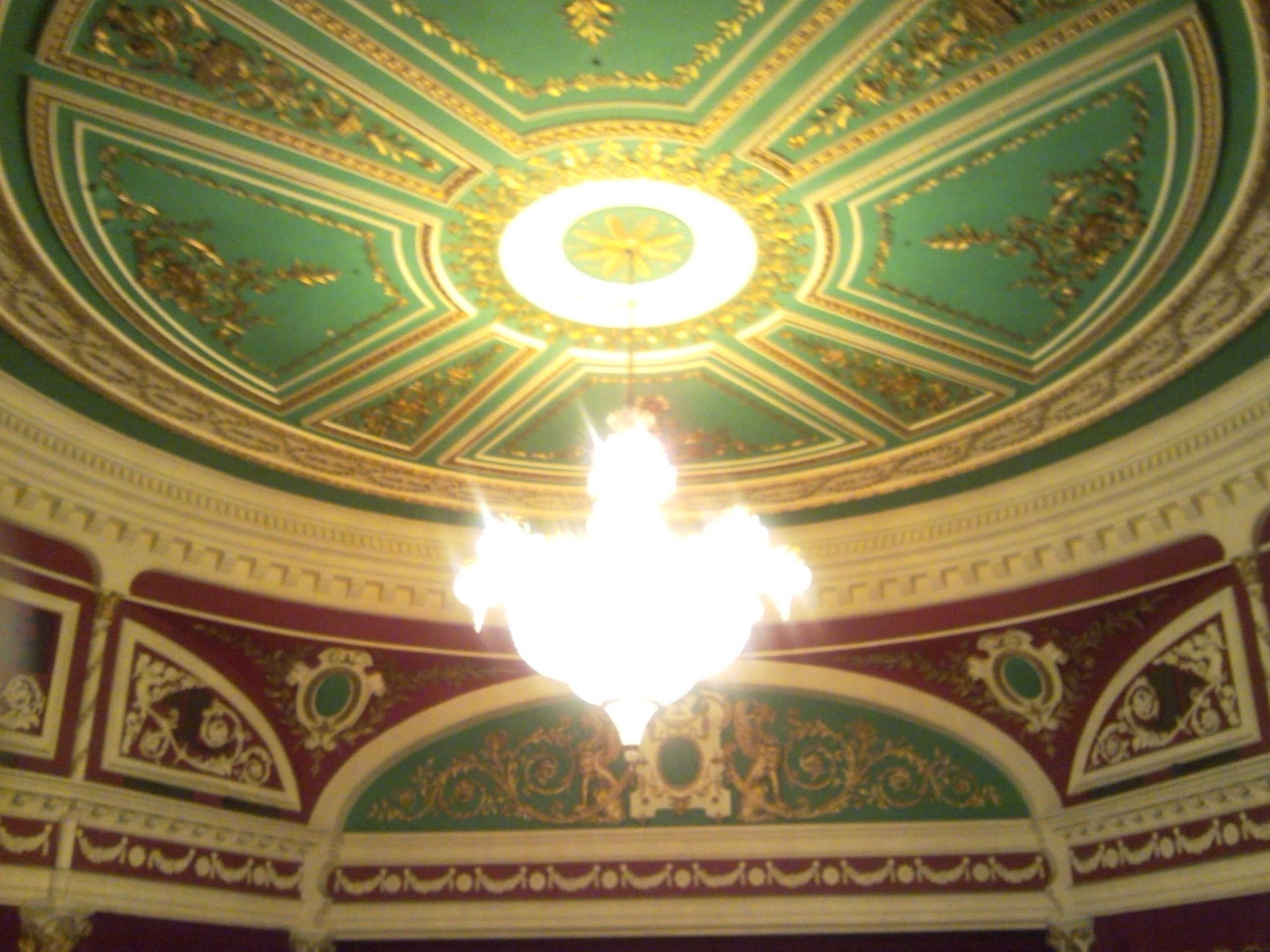 Tonight we saw The Cripple of Inishmaan at The Gaiety. Contrary to how it may appear below, the Gaiety is not illuminated by nuclear fission, but rather a 5,404  Waterford Crystal chandelier installed in 2007.