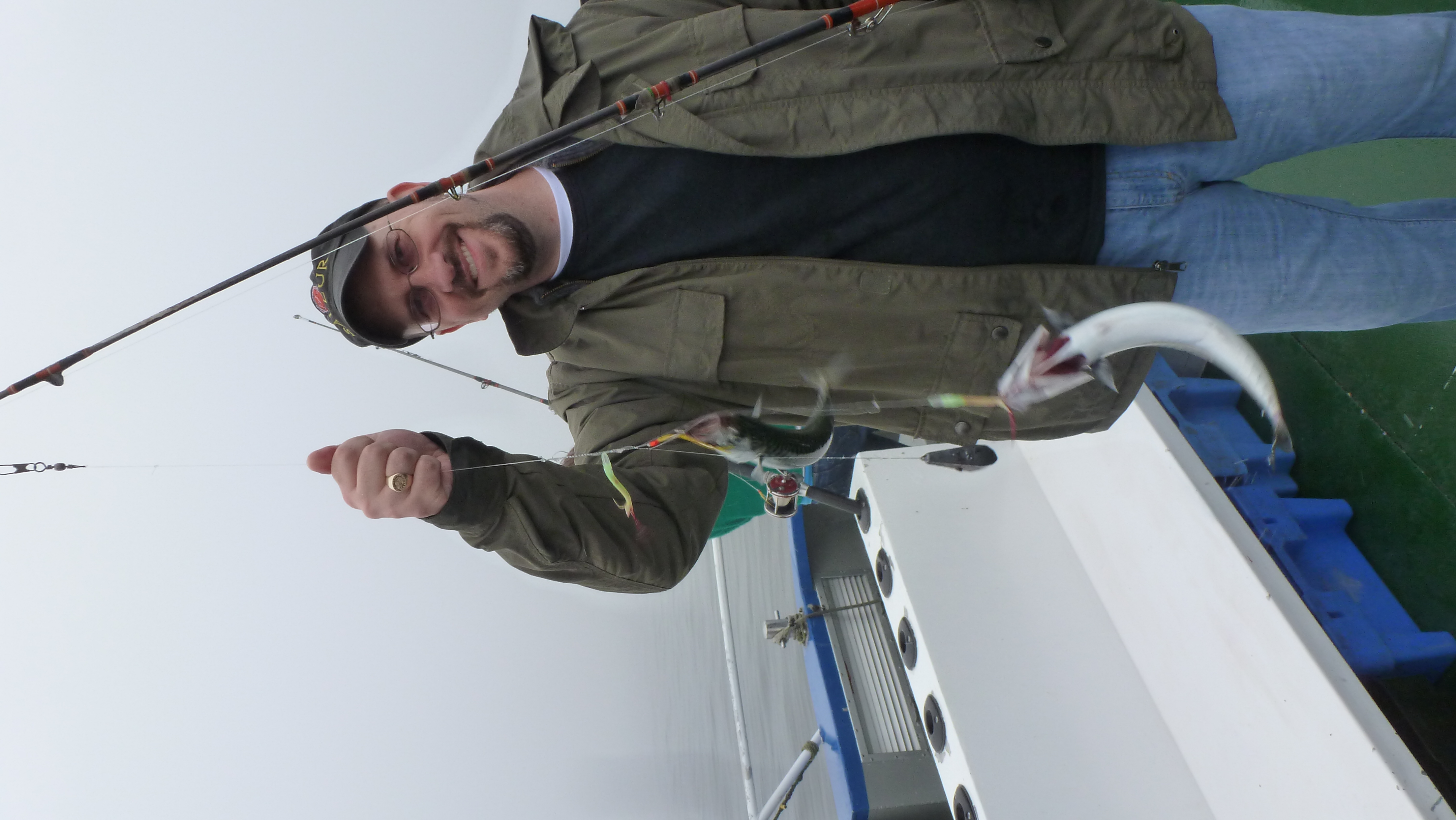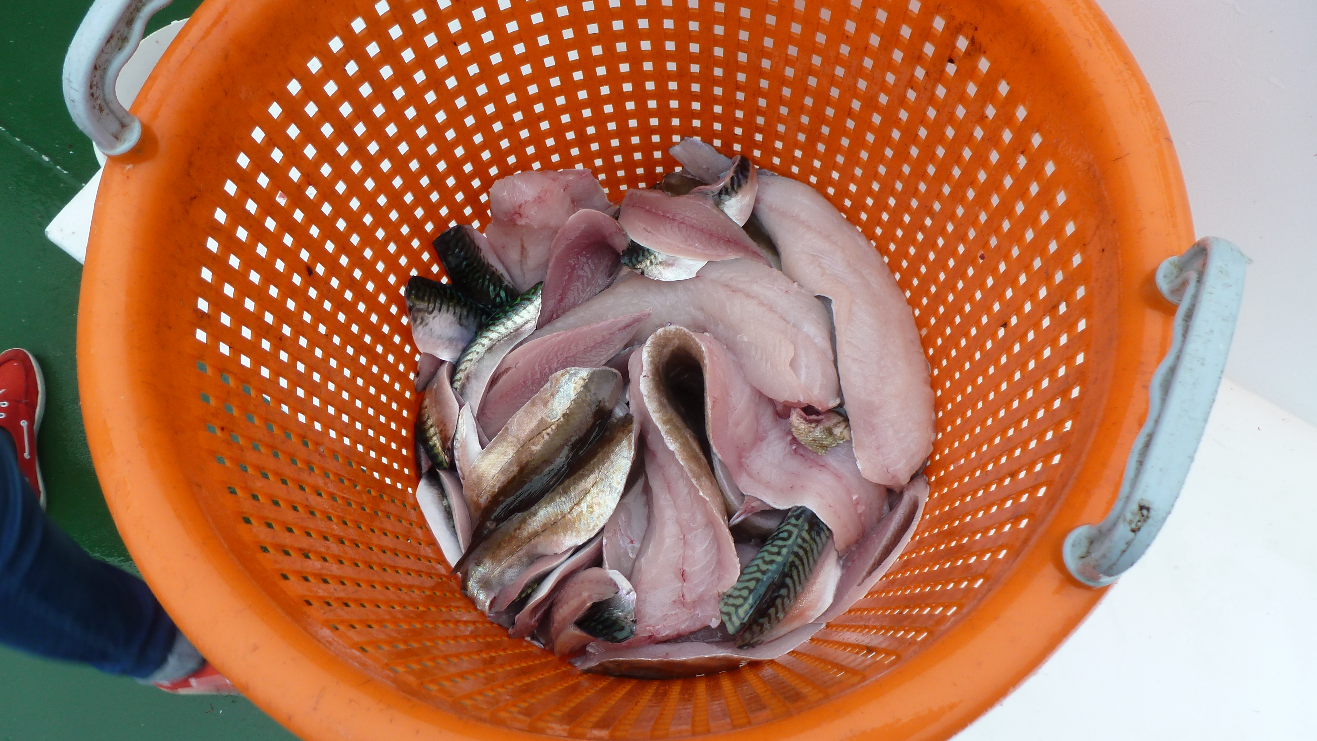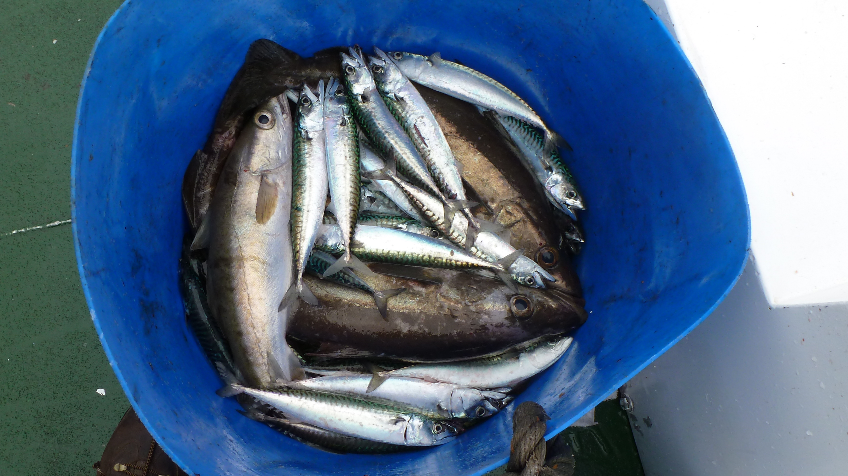Paul moved the boat to a new location. We all hit twitter with our fish tales. Fishing is fun! Then we fished some more. We threw back tiny mackerel. We sang sea shanties. (Not really, but we should have.) We caught a load of fish.