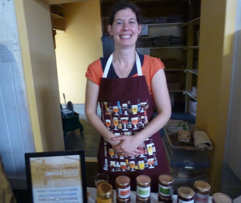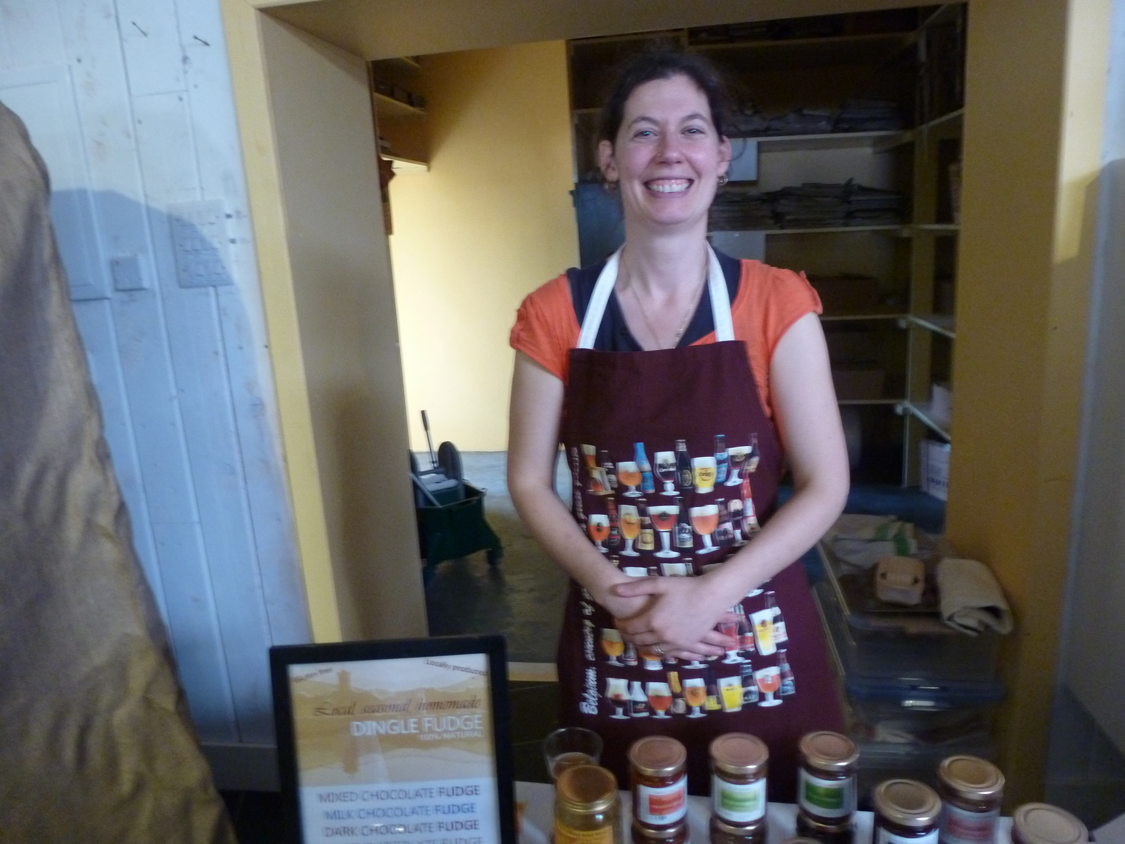 Marie Charland makes Dingle Fudge and a line of chutneys and pickles called Pickled in Dingle. She uses home grown produce in her pickled products, except for fruits that don’t grow in Ireland, like citrus. Marie is French, and passionate, and fun. And we were on TV* together! You can contact Marie at mhcharland at hotmail dot com.