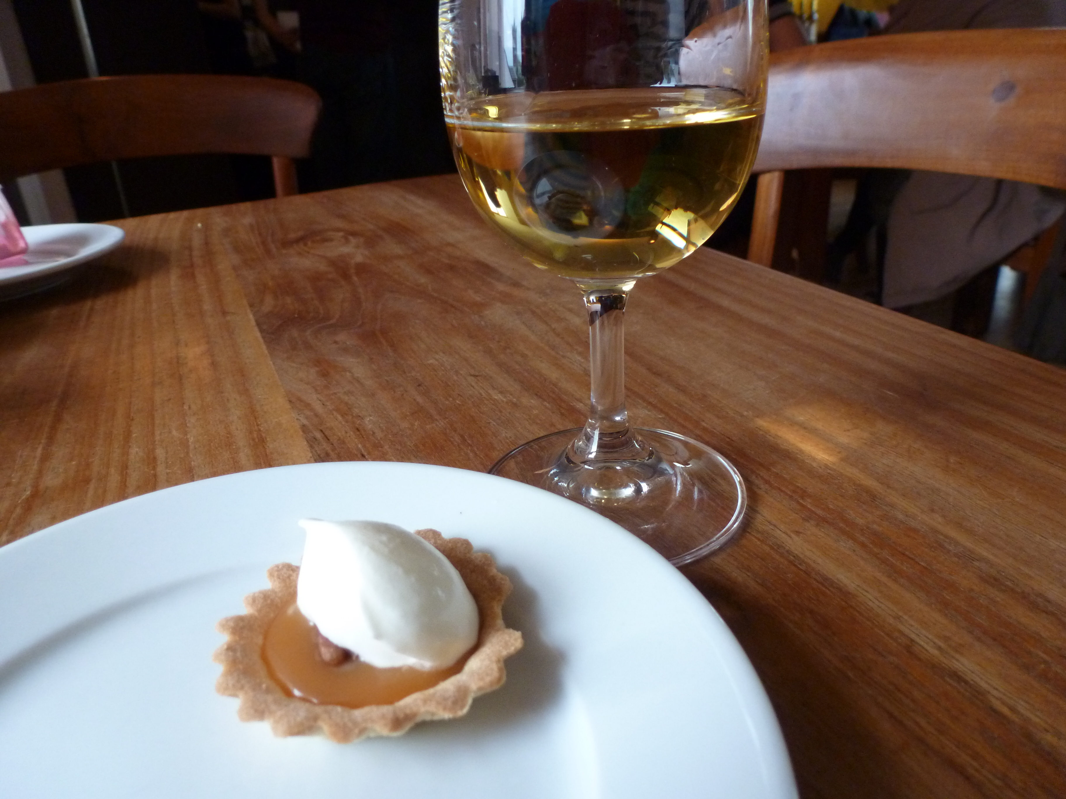 The Taste Trail stop at Goat Street Cafe. A fun stop because they served a pairing of tart with dessert wine. I liked this sweet Jurançon from Chateau de Navailles. And that we got to sit down.